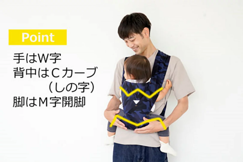 赤ちゃんを正面で抱くとき、手がW字で前にあり、背中や緩やかなカーブで、足が立体的なM字で親にしがみつくような状態、まるでコアラが木につかまる様子に似ていることから「コアラ抱っこ」と呼ばれます。